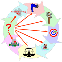 Zijn er fundamentele heroverwegingen die vragen om een radicale nieuwe opzet van bedrijfsprocessen om drastische verbeteringen in eigentijdse normen van prestaties zoals kosten, kwaliteit, service en snelheid te kunnen bereiken.